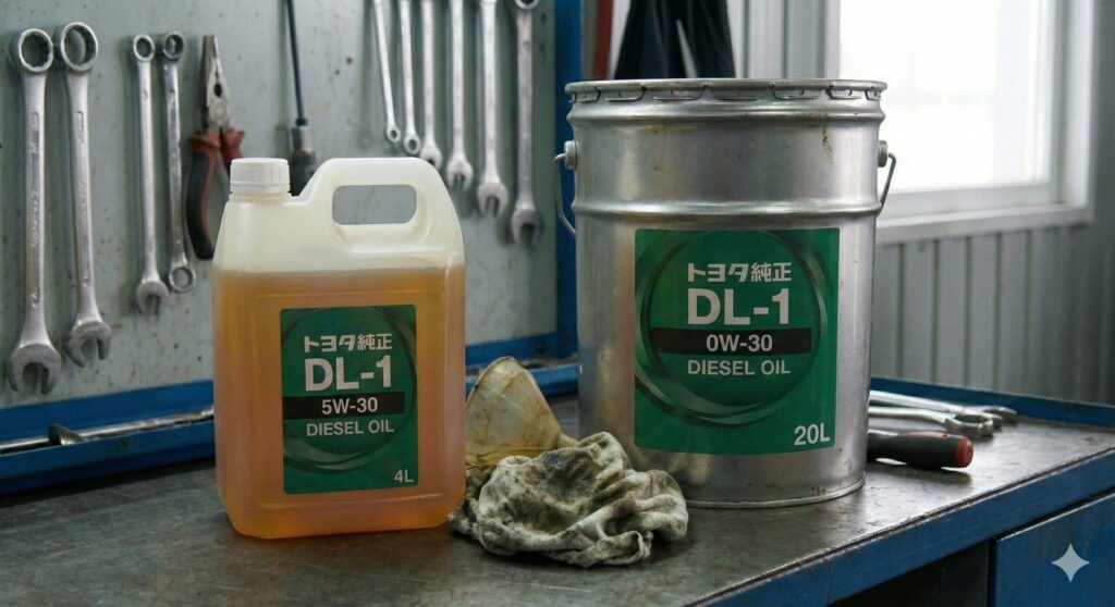 オイル缶に書いてある謎の数字、気になりますよね。 ハイラックスの推奨粘度は**「0W-30」ですが、カー用品店には「5W-30」**も売っています。「これ、何が違うの?」という疑問にお答えします。