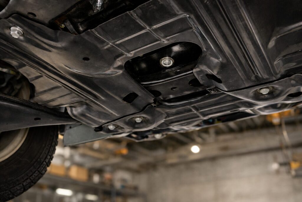 廃油処理パックをドレンボルトの真下にセットします。アンダーカバーがある場合は、必要に応じて外すかずらして作業スペースを確保します。